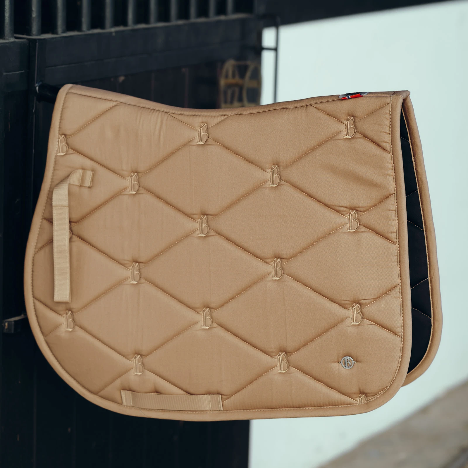 The B Vertigo Laurel saddle pad is made with quick-dry lining and square quilting to keep your horse super comfortable while you are riding. Logo embroidery adds an elegant touch, and seasonal colors bring fun to your summer tack. Also available as dressage saddle pad (#17399). Combine it with the B Vertigo Laurel ear net and fleece bandages for a full look!