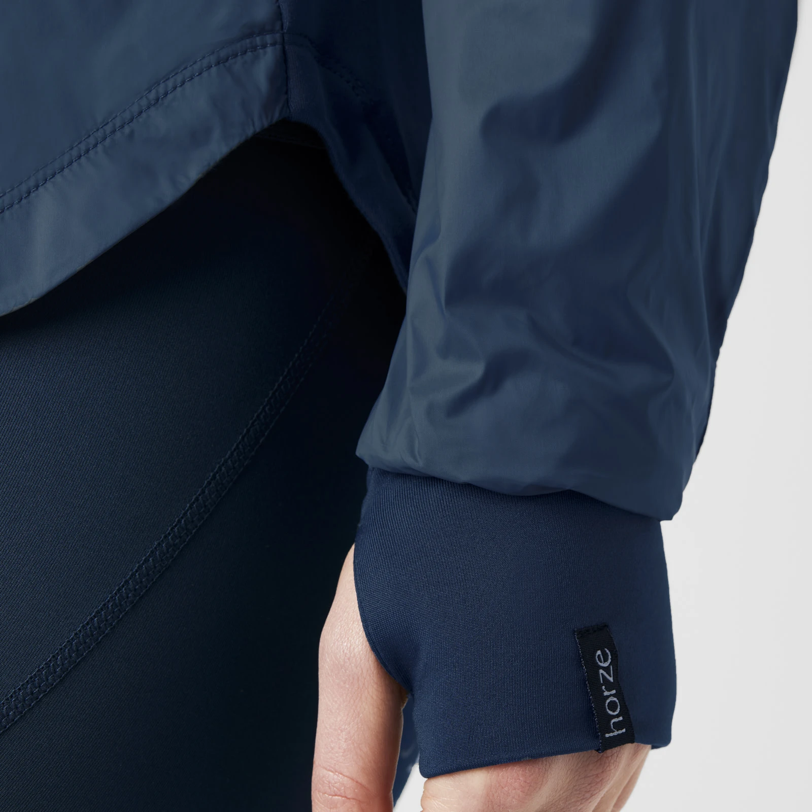 The coat is designed to flatter and comes in several attractive color options. Soft, lightweight technical fleece is combined with windproof woven fabric to create a durable hybrid anorak. The hem is slightly lower at the back for more protection, and the front pockets are closable with zips. The main zip opens halfway down the front – keep it open when warm or close up the high collar to keep your neck warm. A reflective strip runs the length of the zip, and we all know that the more reflective details you can wear in the dark, the better!