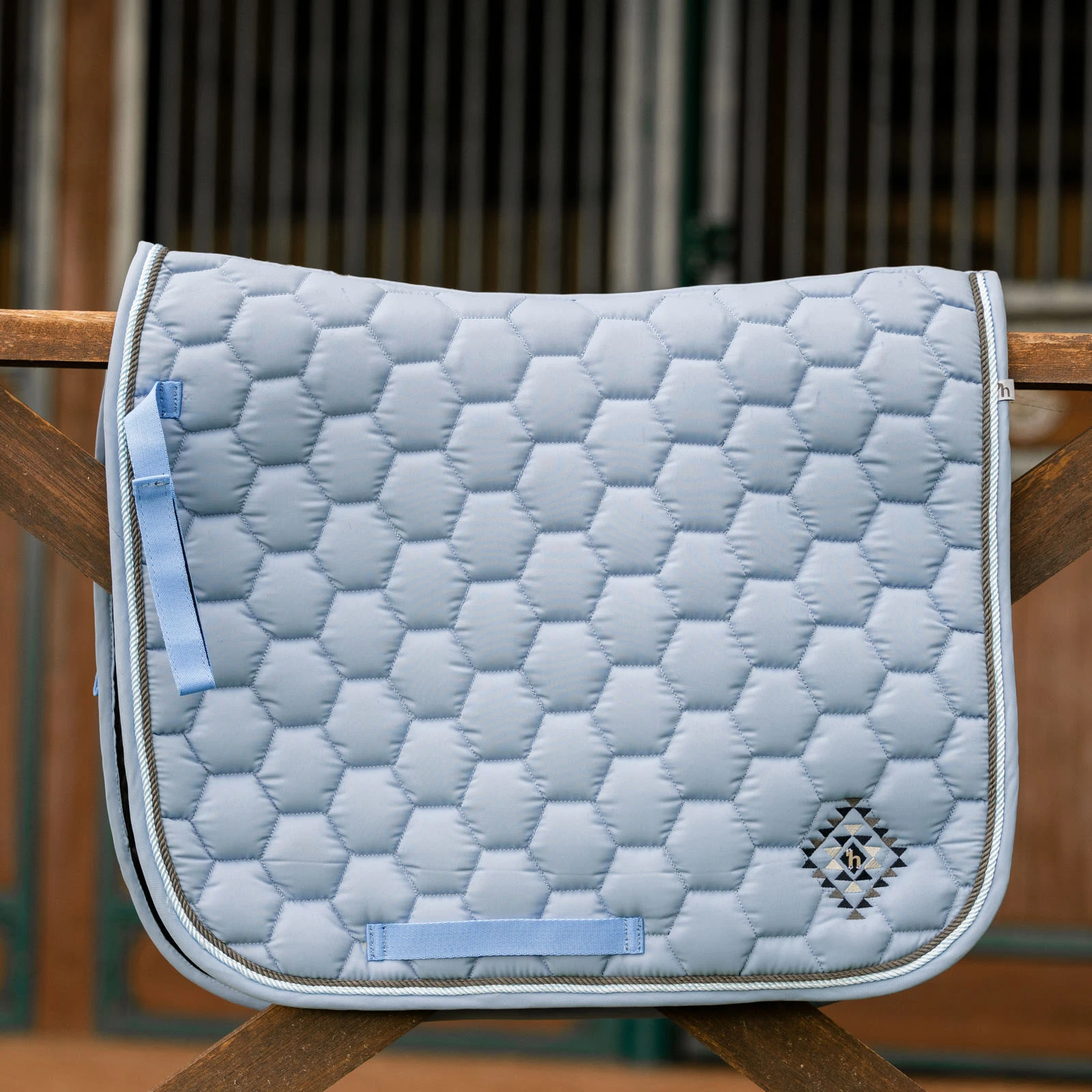 Our Horze Arizona saddle pad is designed with pretty honeycomb quilting. Quick-dry lining keeps your horse comfortable. Two rows of cord add an elegant touch to this saddle pad. The Aztec embroidery in the corner is a lovely detail. Pair this saddle pad with the rest of our Horze Arizona range for a full outfit.