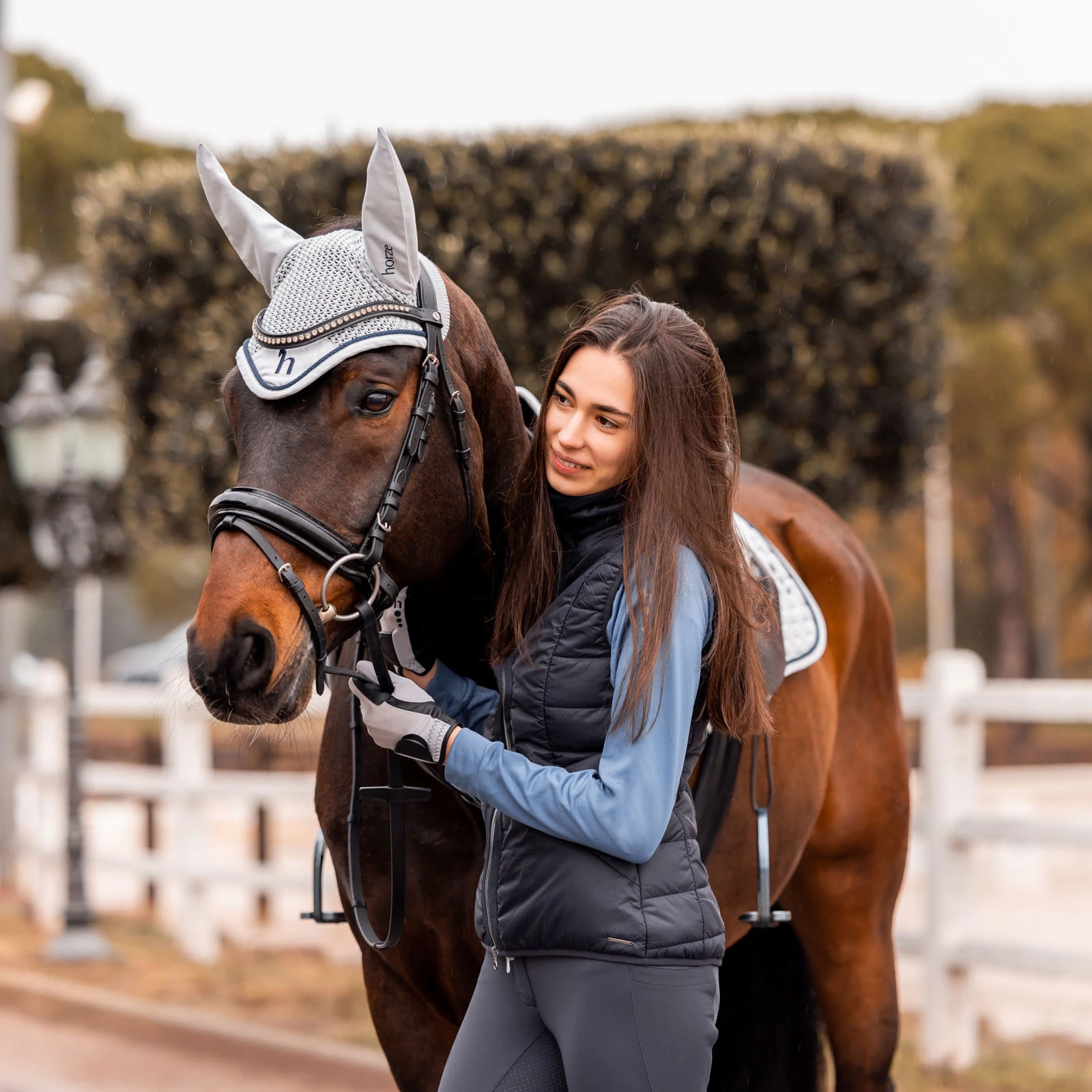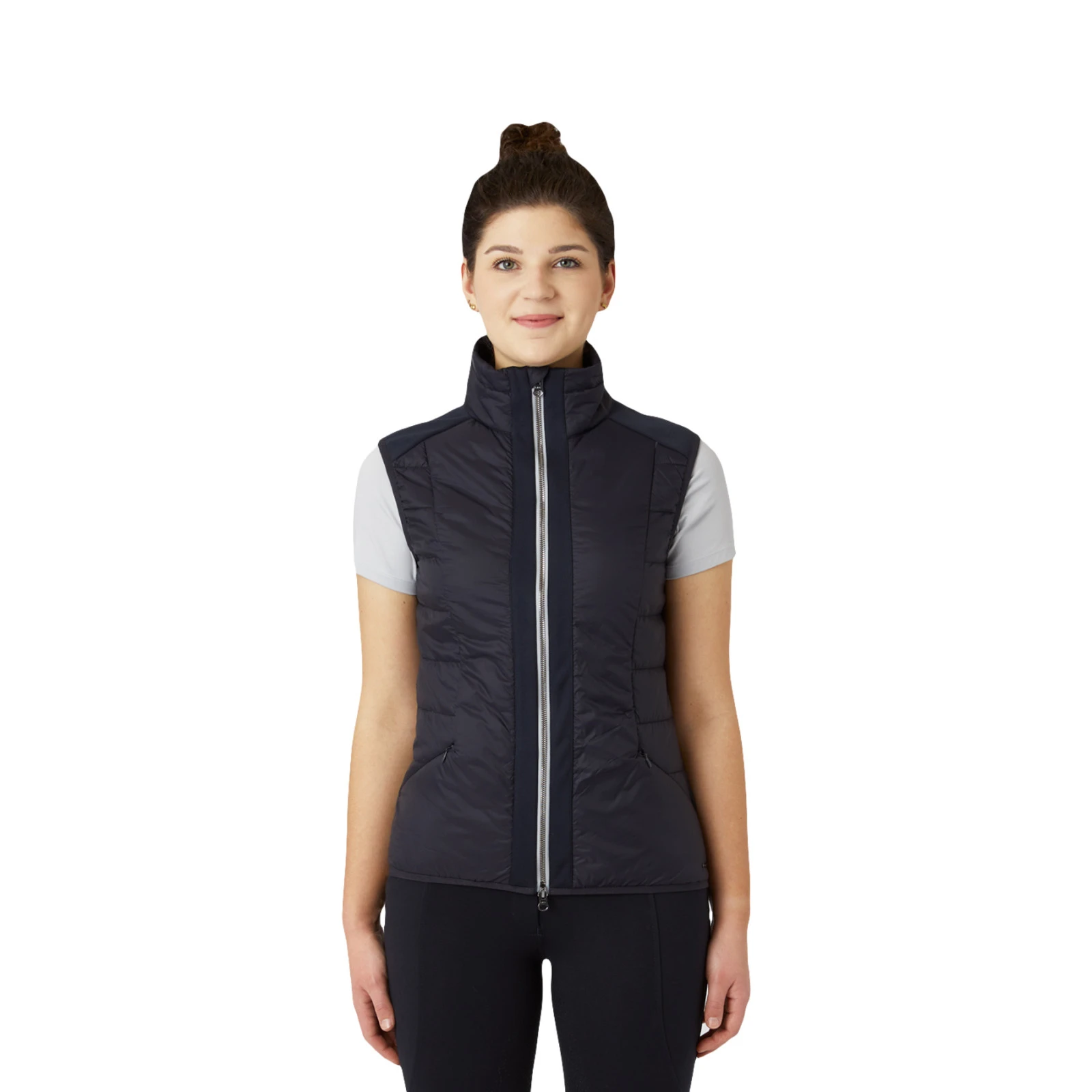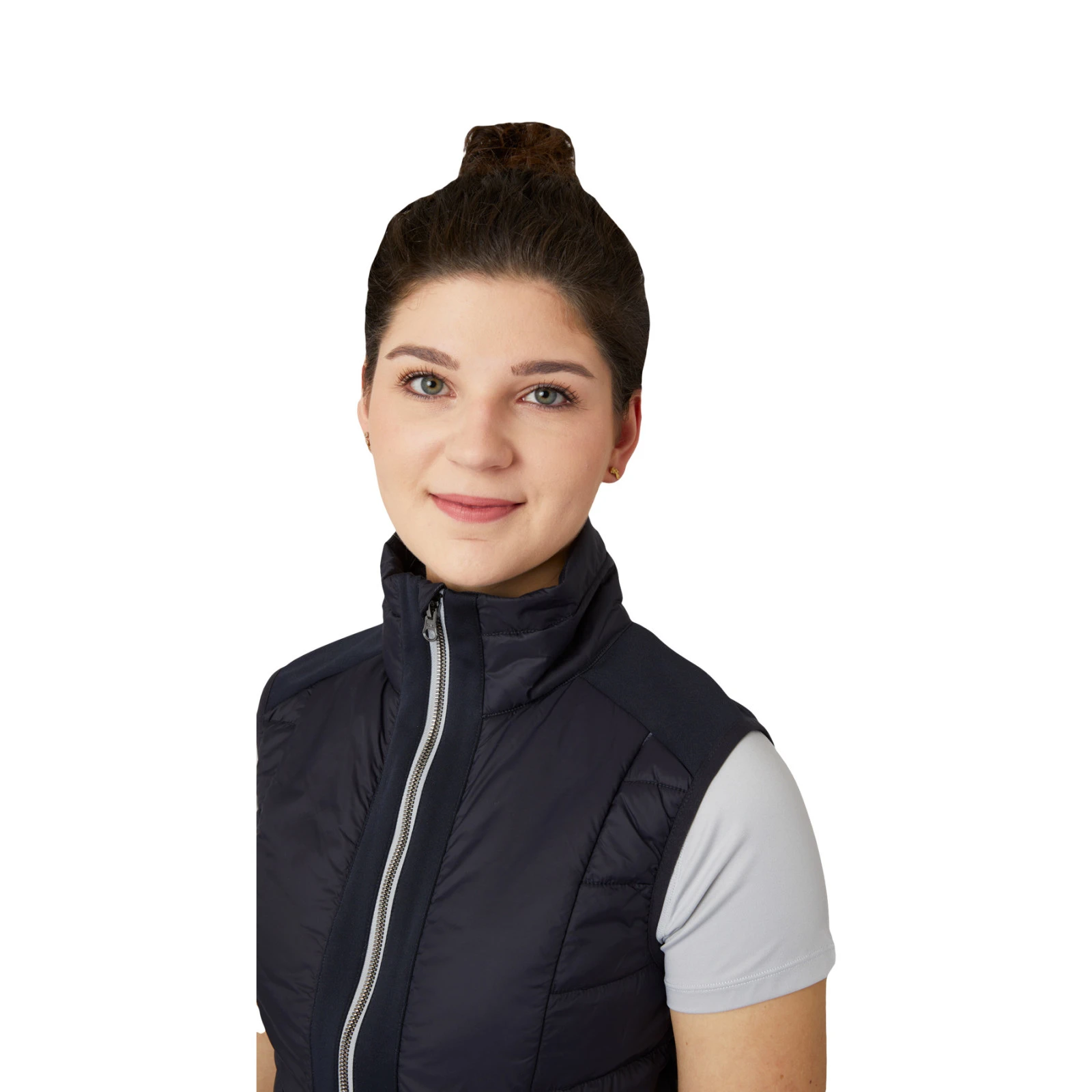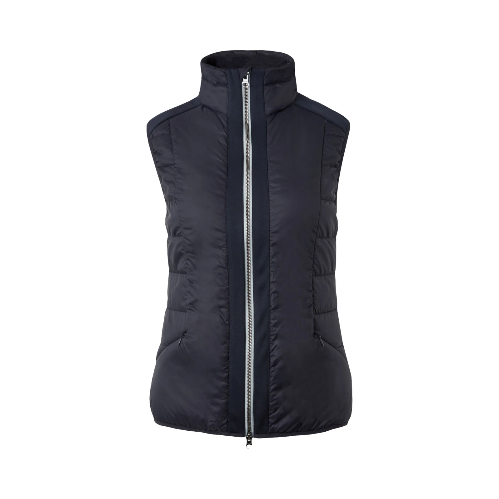 This functional women’s vest has light padding and is quilted at the sides and has a oneside stretch fleece panel at the back middle and also at back of sleeves, to provide optimal moveability when riding. Contrasting piping at hem, armholes and zipper. Water repellent and windproof, this is a perfect option for layering. 3D logo print on the back below the neck and a small metal logo plate at the front hem. Two hidden zipper pockets for keeping your belongings safe during rides.