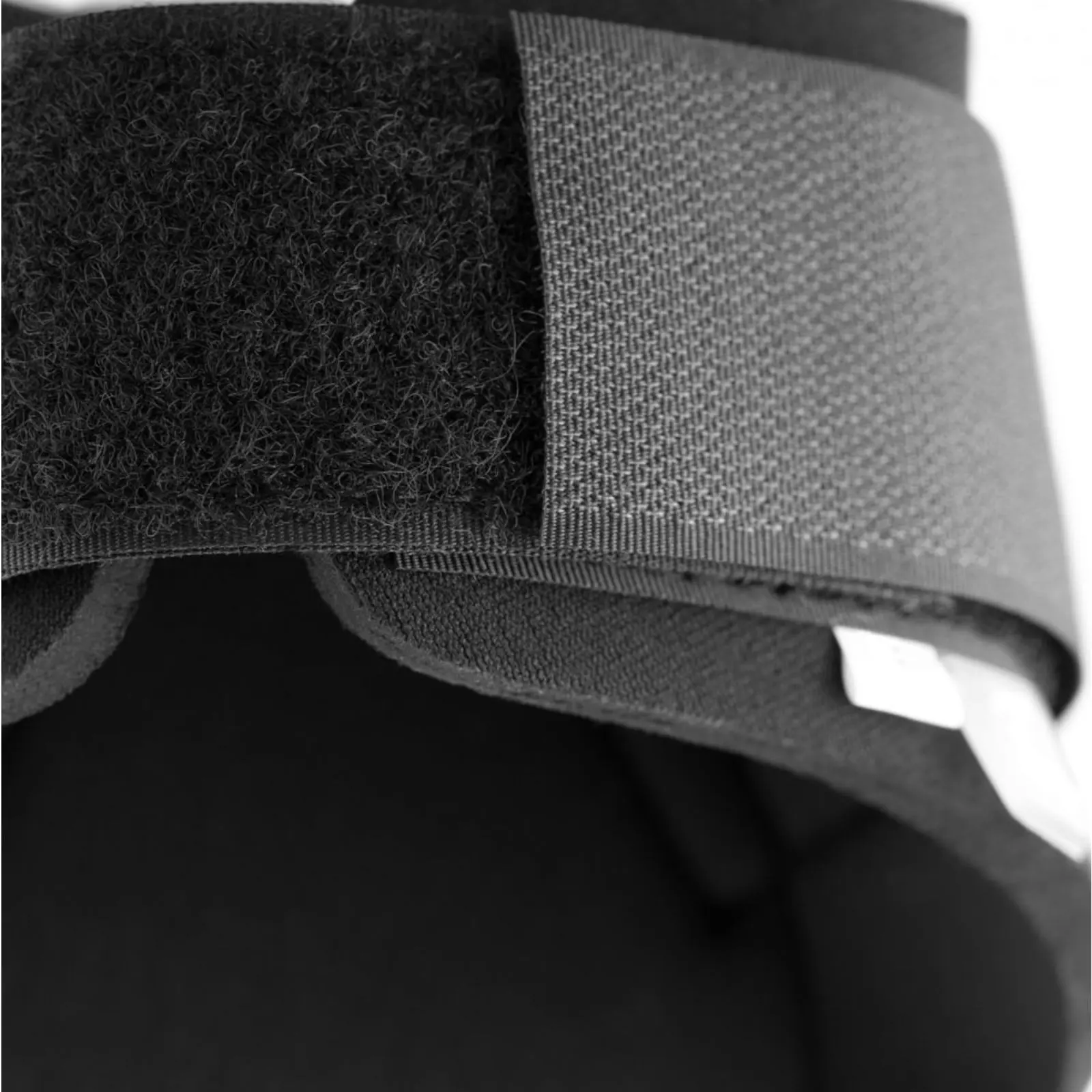 The hard outer shell protects the fetlock from knocks as the horse lands after a jump and takes a stride or plays rough during turnout causing injury to the fetlock. The strong hook and loop closure keeps the boot from opening, and the soft neoprene lining keeps the skin from rubbing.