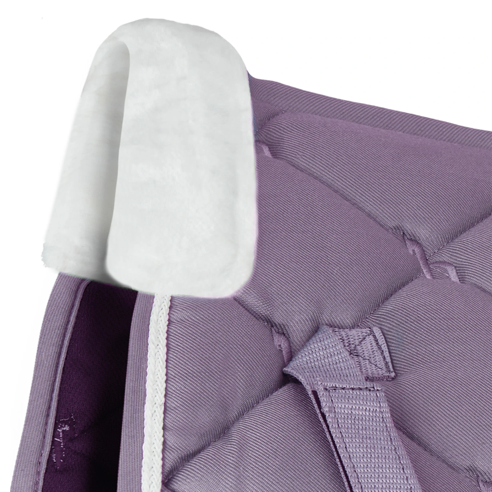 The Horze Ghent saddle pad features faux fur at the withers. Quick-dry lining keeps your horse comfortable. Rombe quilting and the braided trim make for an elegant look. Soft colors are easy to incorporate into your tack. Pair this saddle pad with our matching Horze Ghent brushing boots or bell boots and ear net. Also available as all purpose version.