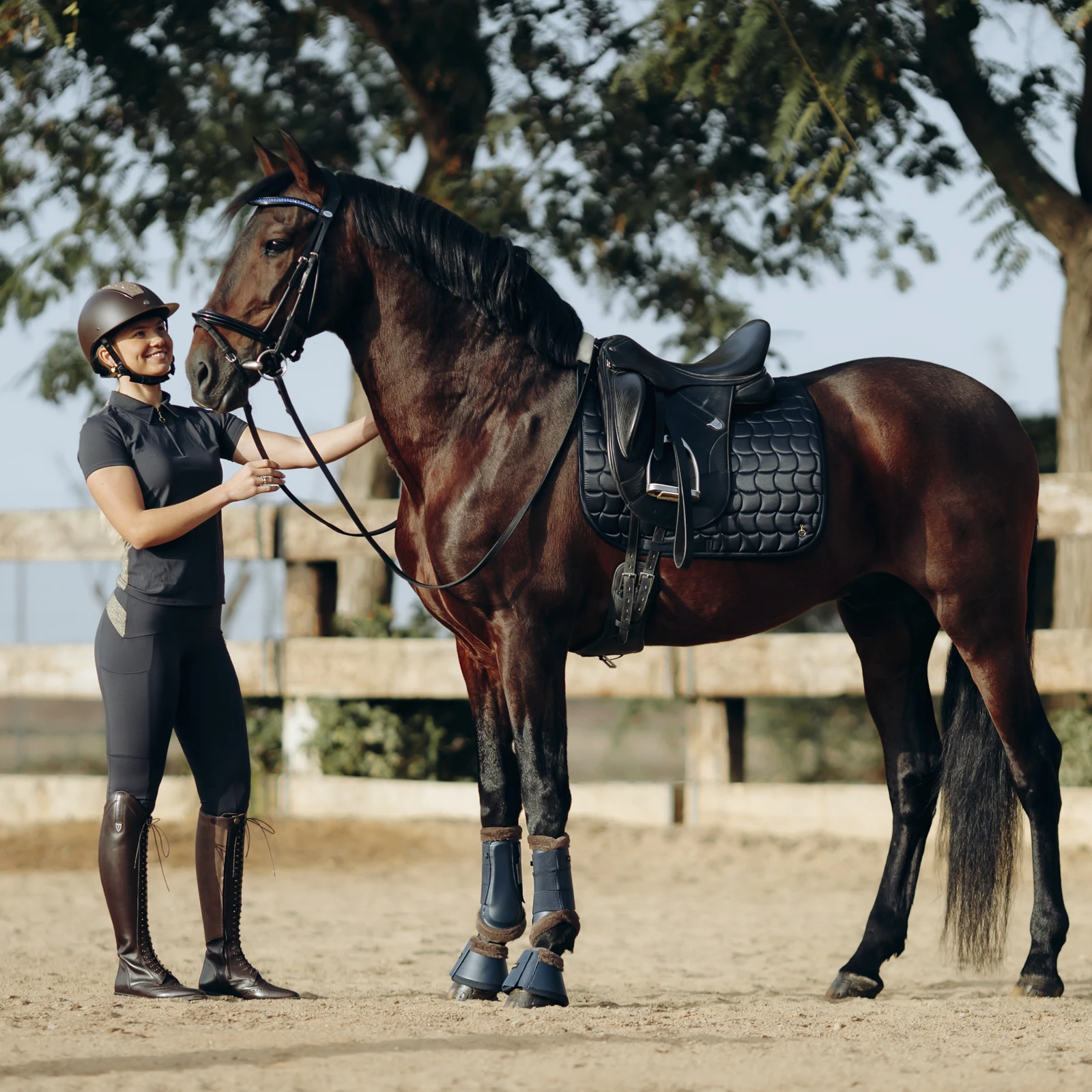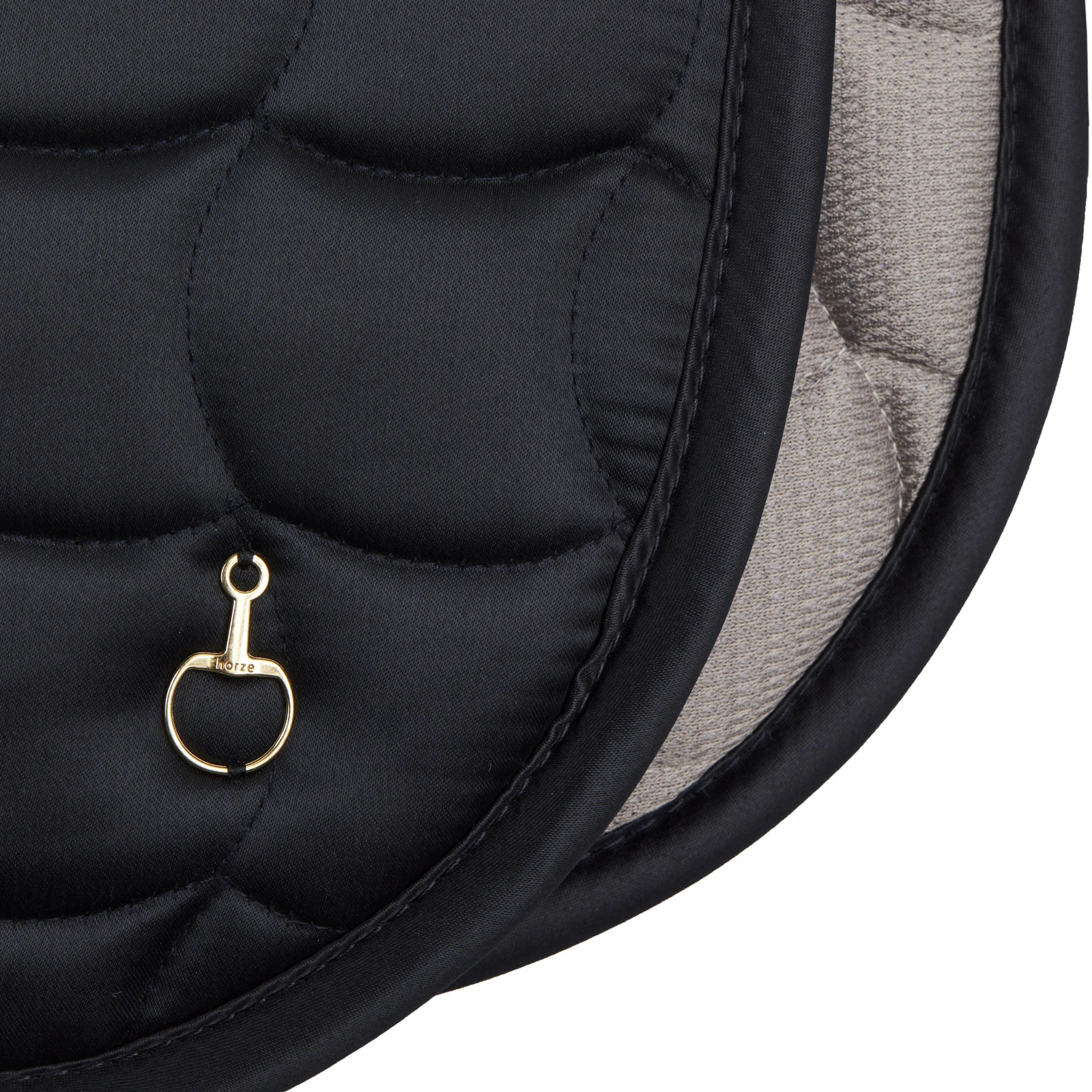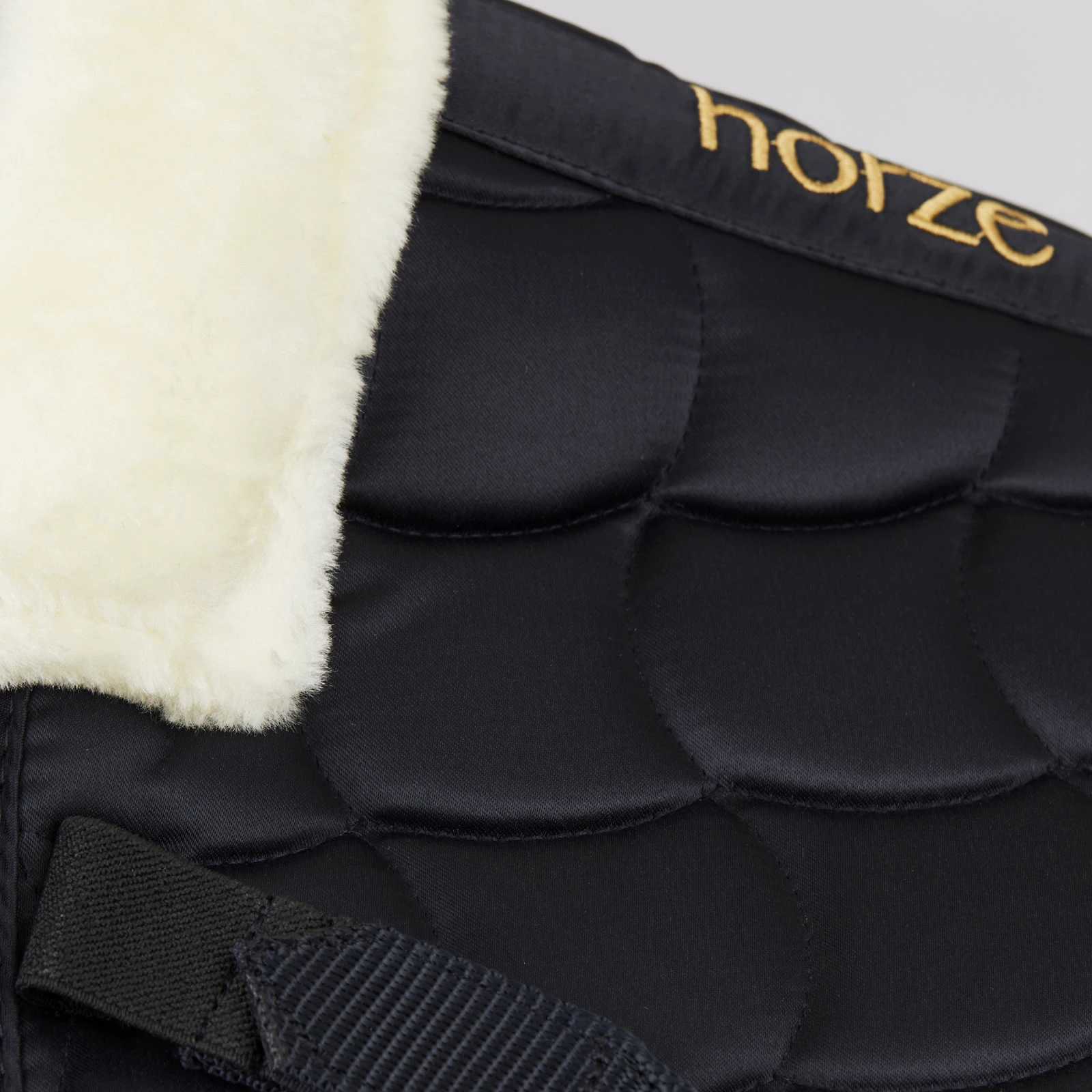The Horze Houston saddle pad is made with breathable lining that wicks away moisture. Wave quilting provides comfort beneath the saddle, and faux fur at the withers is extra soft. Muted colors are timeless, and easily match your tack. This saddle pad is also available in all purpose cut. Combine it with the Horze Houston brushing boots for a full look!