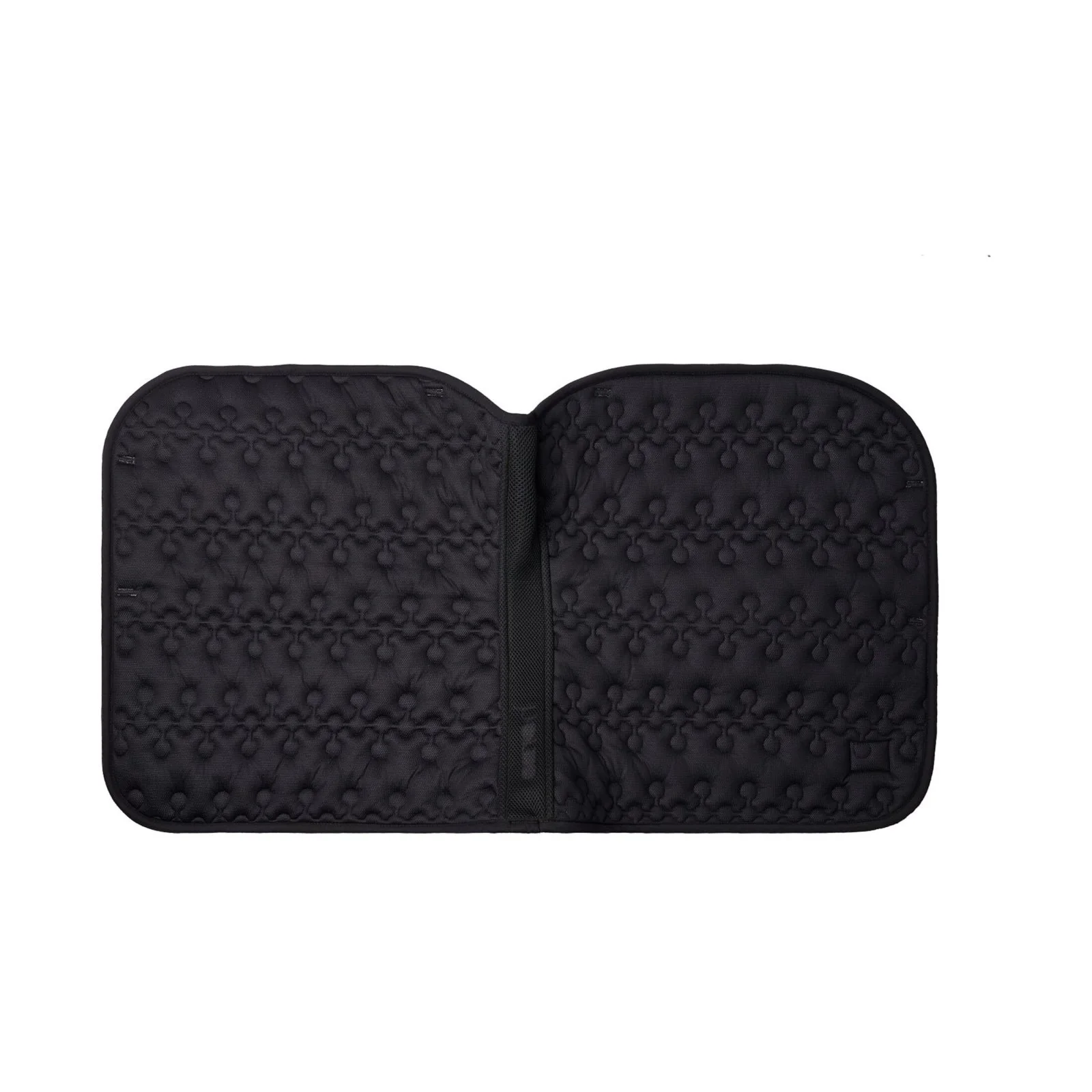 Introducing the Smoky Twilight saddle pad crafted from a thick 3D mesh fabric for increased airflow and temperature regulation. While the quilted upperside creates an elegant look, the moisture-wicking lining offers functionality. The design is completed with a fine contrasting rope and branding along the spine, as well as a logo badge.