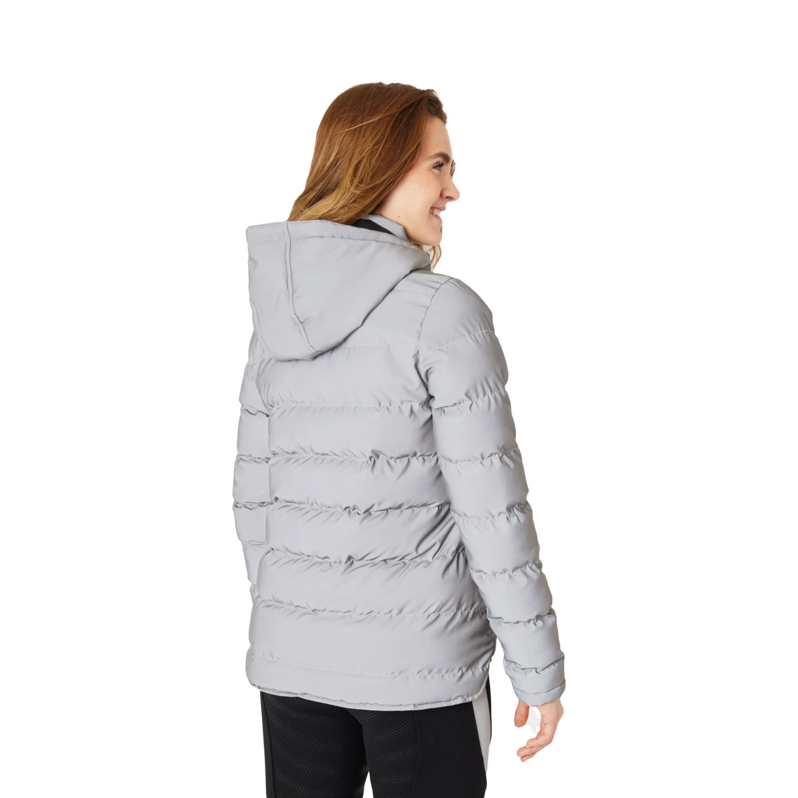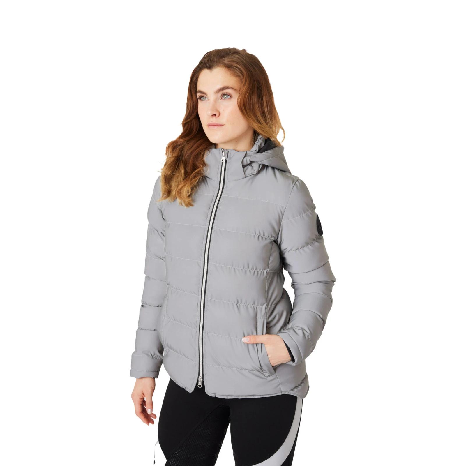 This jacket features reflective fabric that enhances visibility, making it ideal for outdoor activities. The detachable hood with press studs offers versatility and customizable coverage. With light padding, this jacket provides warmth without bulkiness. The 2-way zipper allows for easy and adjustable wear. The polyester lining ensures comfort and durability. Complete with logo details on the sleeve, this jacket combines style and brand identity. Stay visible and fashionable with the Horze Padded Reflective Jacket